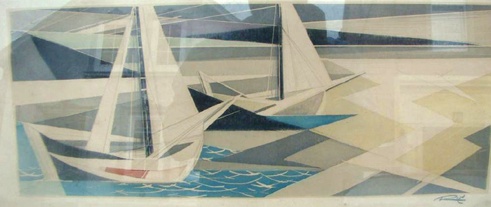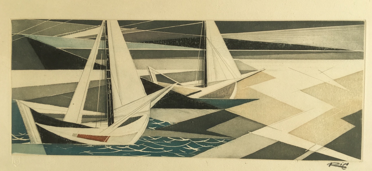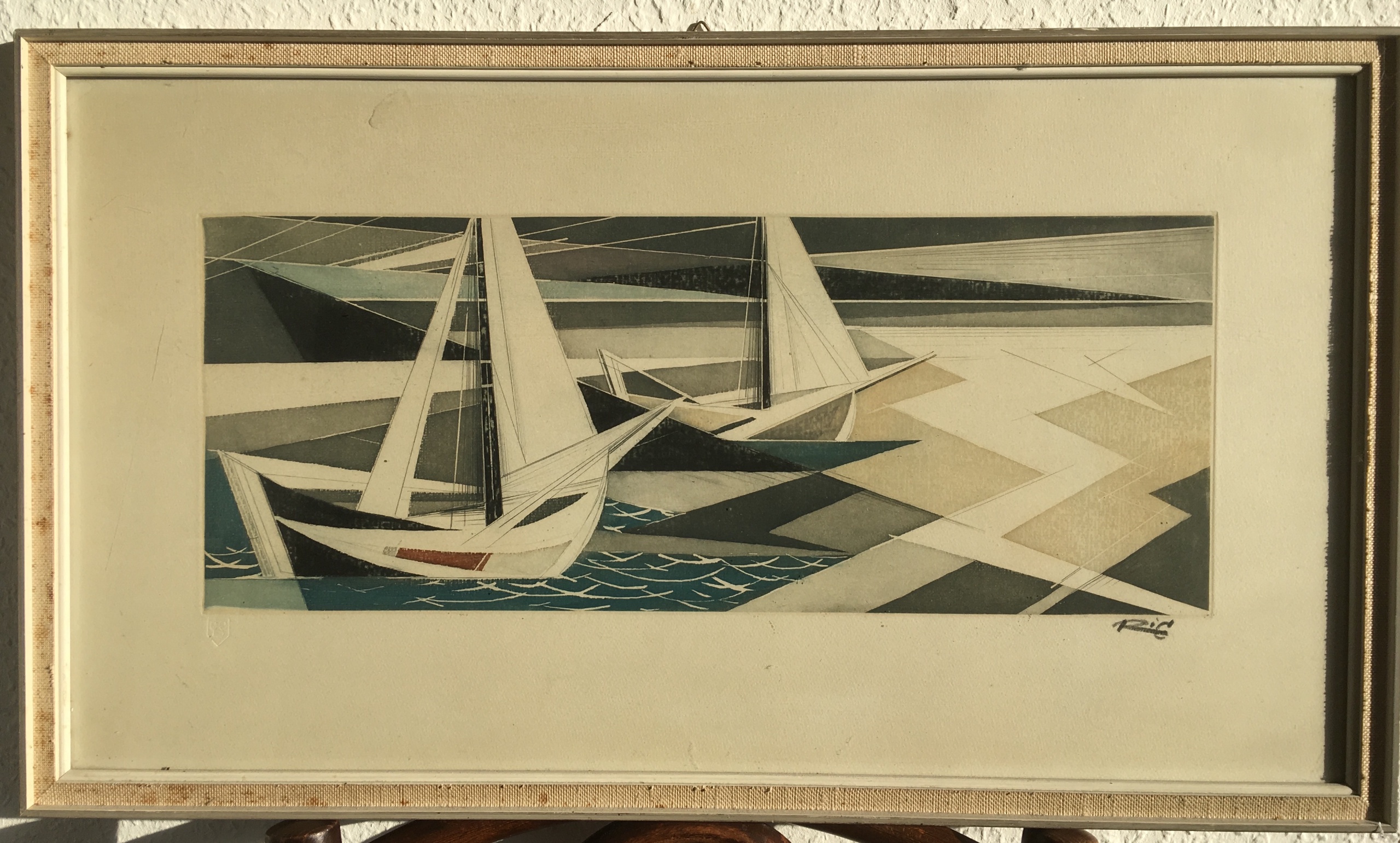 Kurze Beschreibung: Dies ist mein dritter Druck von den Segelbooten (Ric 07 ). Dieser Druck ist interessant, weil er nicht hinter Glas gerahmt ist, sondern auf Karton aufgezogen wurde. Außerdem wurde das Blatt so stark beschnitten, dass nicht einmal die Signatur erhalten geblieben ist.