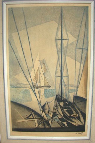 Kurze Beschreibung: Segelboot neben einem Hafen / Slip