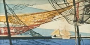 Kurze Beschreibung: Fischernetze und ein Schiff