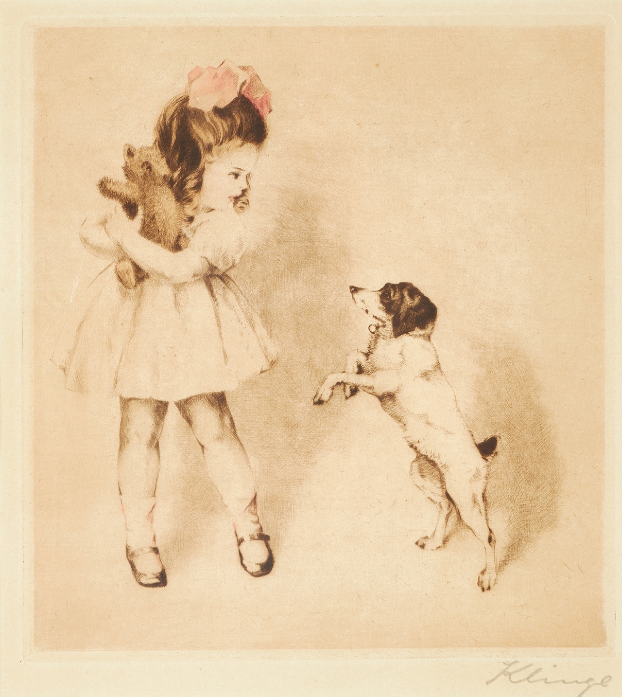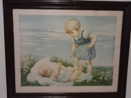 Kurze Beschreibung: Ein Druck von Kindern auf einer Wiese von Hedwig Klinge, Ehefrau von Fritz Neumann, wieder falsch zugeschrieben.