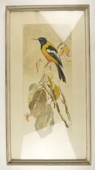 Short description: A colourised print of a bird by Fritz Neumann. The bird is either a Baltimore oriole or another New World oriole species. Since there are no records that Neumann has ever been in America (yet), he might have seen it at an Aviary.