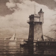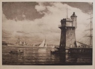 Short description: A etching of a the war harbour Kiel by Fritz Neumann.