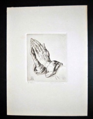 Short description: An etching after Albrecht Dürer’s “Preying Hands” by Fritz Neumann. Even if the motif and style doesn’t match, the signature does.