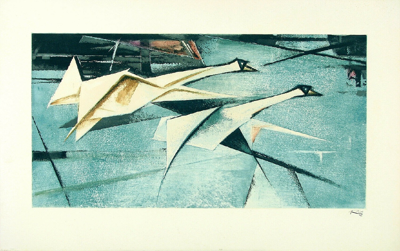Short description: Two swans in flight