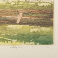 Short description: Coloured etching of a duck pond by Fritz Neumann
