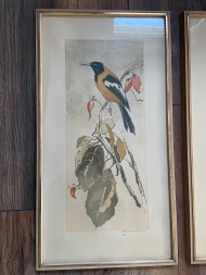 Short description: A colourised etching of a goldfinch by Fritz Neumann.