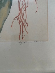 Short description: A colourised etching of a lake by Fritz Neumann. The post shows two identical prints.